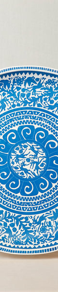 Batea de Olinalá decorada con un motivos en color negro y arena, realizada mediante técnicas tradicionales de laca artesanal. La pieza refleja la maestría de los artesanos de Olinalá, donde el trazo minucioso y el equilibrio cromático dialogan con la función y la contemplación. Obra que vincula tradición, simbolismo y expresión estética dentro del arte popular mexicano.