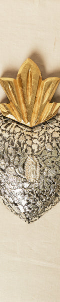 Corazón Milagrito, elaborado de manera artesanal. Esta pieza de madera tallada y pintada a mano, está adornada con los famosos Milagritos de hojalata, convirtiéndolo en un objeto decorativo ideal para realzar cualquier espacio. Este producto no solo refleja la rica tradición artesanal mexicana, sino que también simboliza amor y protección, siendo un regalo perfecto para ocasiones especiales. Disponible en más modelos.