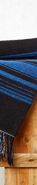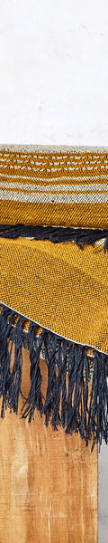 Virgin wool rug, handcrafted on a backstrap loom with brocade borders.