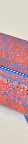 Joyero Olinalá artesanal elaborado en madera de alta calidad, decorado con intrincados diseños pintados y esgrafiados a mano que reflejan la tradición y el arte mexicano. Cada pieza muestra la precisión y creatividad de los artesanos de Olinalá. Perfecto para almacenar joyas, pequeños objetos o como elemento decorativo, este joyero combina funcionalidad con un estilo elegante y auténtico que destaca en cualquier espacio.