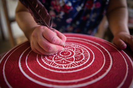 Lináloe wood candlestick, decorated with the Olinalá technique.