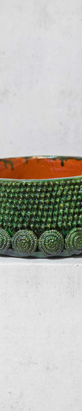 Handcrafted centerpiece using the Glazed Clay and Pastillaje Clay technique. Every detail of this piece has been carefully hand-molded by expert artisans, giving it unparalleled beauty and elegance.