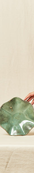 Vaciabolsilllos de cerámica de alta temperatura, con una elegante forma de pañuelo. Su esmalte a aguas en tonos verdes, resalta la belleza de esta pieza, elaborada de manera artesanal, garantizando que cada unidad sea única y diferente de las demás. Ideal para añadir un toque distintivo y funcional a cualquier espacio.