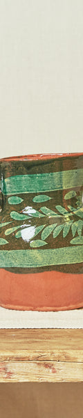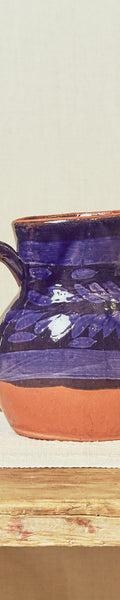 Jarra elaborada de manera artesanal, modelada en barro cocido, y decorada en azul con detalles florales que le aportan un estilo tradicional y elegante. Ideal para servir agua, vino u otras bebidas, así como para usarla como elemento decorativo en cocinas, comedores o espacios rústicos.
