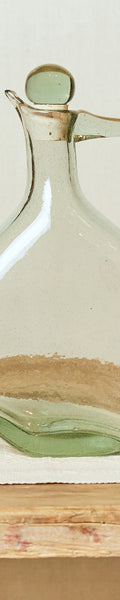Jarra aplastada de vidrio soplado, con un diseño elegante en color transparente, ideal para cualquier ocasión. Su toque elegante y de originalidad, y su elaboración artesanal garantiza calidad y exclusividad. Perfecta para servir bebidas o como elemento decorativo en tu hogar. Cada jarra es única, reflejando la maestría del vidrio soplado y la atención al detalle en su elaboración.