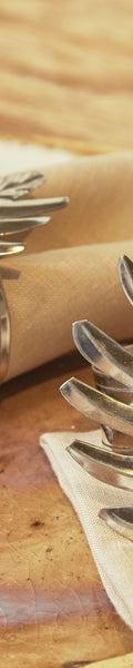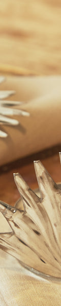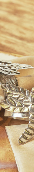 Pack de 2 servilleteros elaborados de manera artesanal en hojalata, su cuidado trabajo de recortado y de repujado da forma a un original diseño de hoja. Su acabado realizado a mano aporta textura y personalidad, convirtiéndolos en un complemento distintivo que aporta carácter y un toque distintivo a cualquier mesa. Su estructura ligera y resistente permite un uso práctico sin renunciar al diseño.